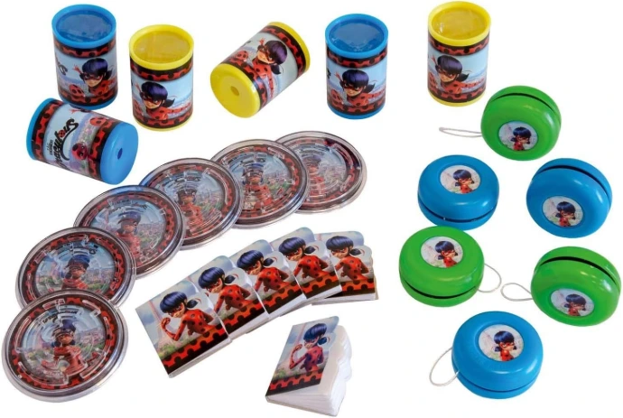 Pour un anniversaire sur le thÚme de LadyBug : 24 mini cadeaux à distribuer lors d'un anniversaire ou à mettre dans la pinata Miraculous. Le lot comprend: - 6 yoyos - 6 carnets - 6 kaléidoscopes - 6 jeux de patience labyrinthe