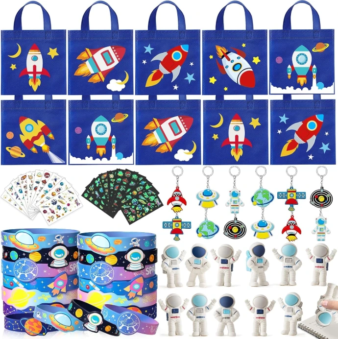 Un lot de cadeaux sur le thème de l'espace, festif, qui s’adapte à toutes les célébrations.